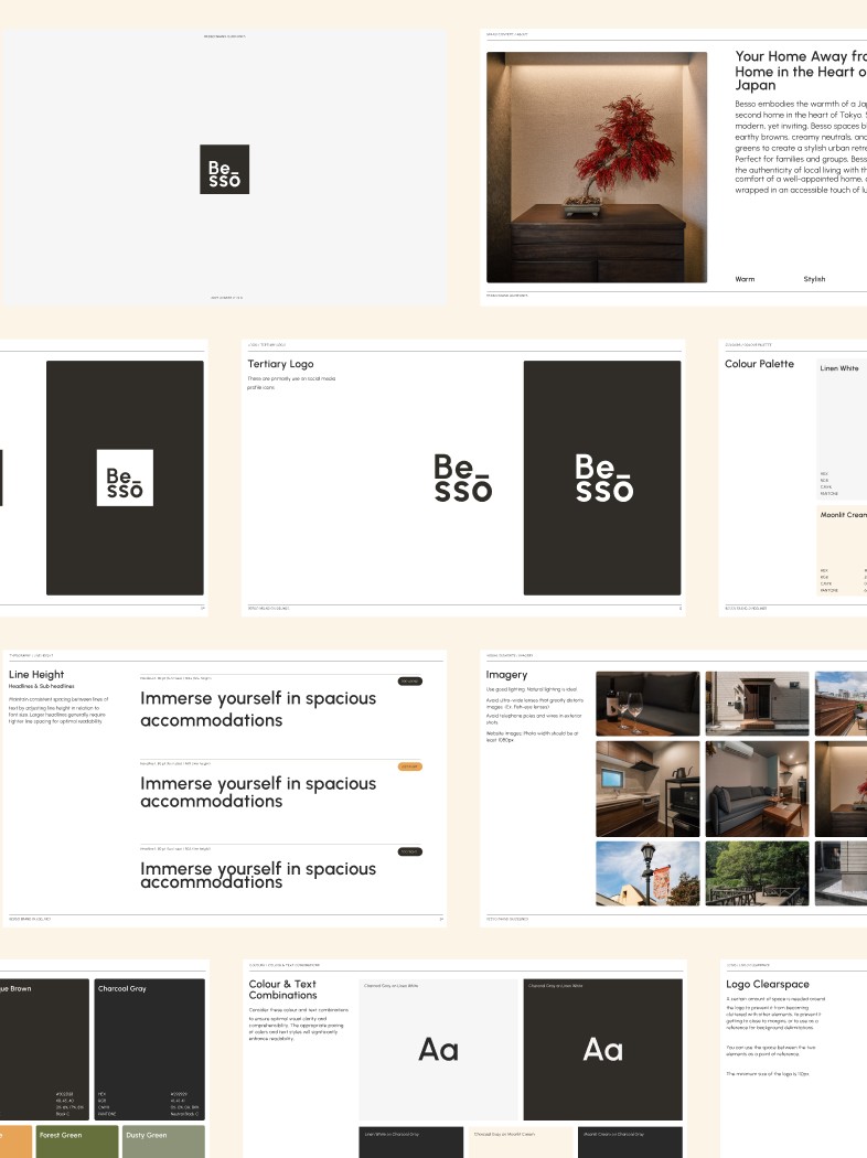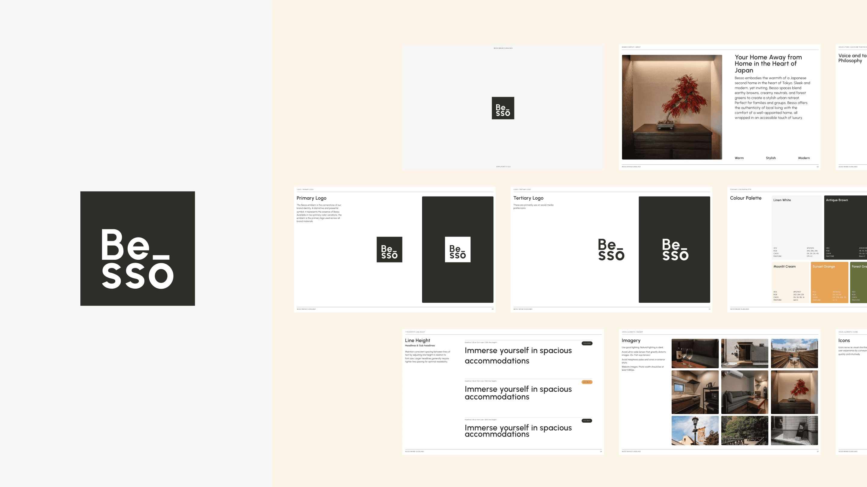 We chose it to express the brand’s promise: a second home in Tokyo. The Romanized form, Besso, balances authenticity with global readability—simple, modern, and rooted in Japanese hospitality.